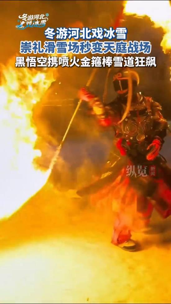 12月5日,河北张家口。崇礼富龙滑雪场惊现“黑神话悟空”本尊!脚踩雪板腾云驾雾,手中金箍棒竟然真的喷火开路,这滑雪场面也太燃了吧!
