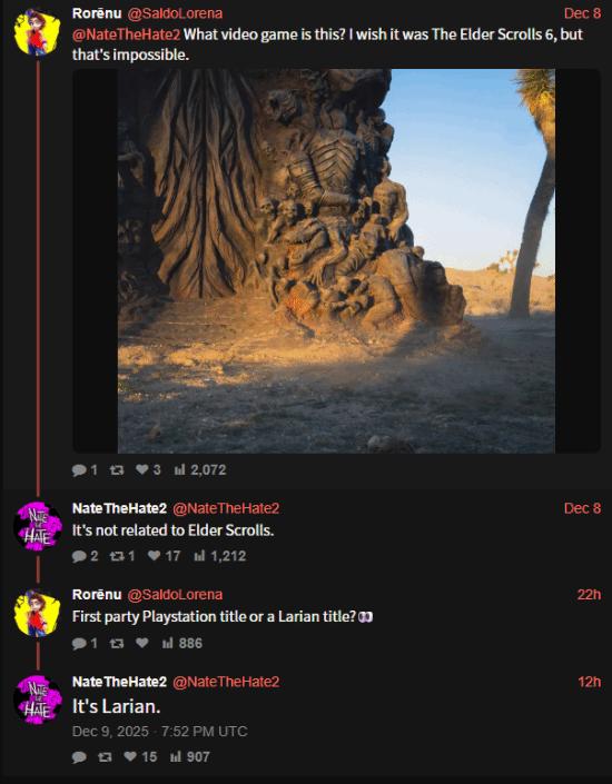 今日,知名舅舅党NateTheHate回应TGA神秘雕像,表示这是拉瑞安的作品。