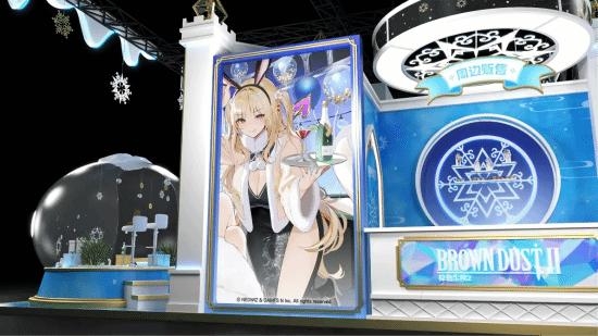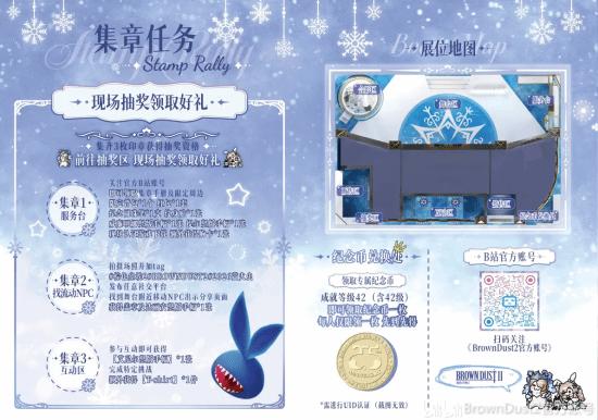 在服务台,您可以关注B站官方账号@BrownDust2官方账号,获得【限定背包】、【红包】、【纪念圆珠笔】、【纹身贴】,【威廉明娜竖版手幅】、【提尔竖版手幅】,出示游戏界面,还能额外获取【胸卡】