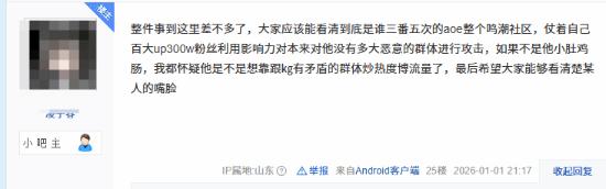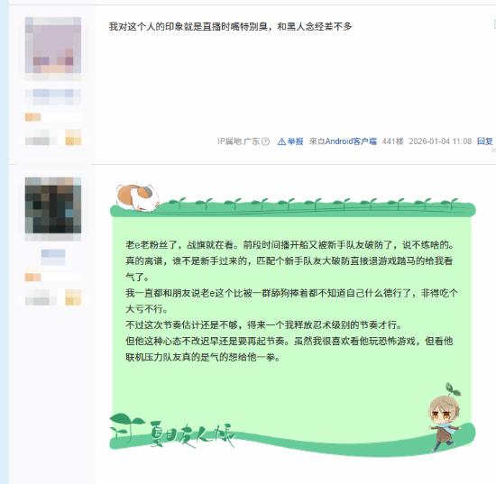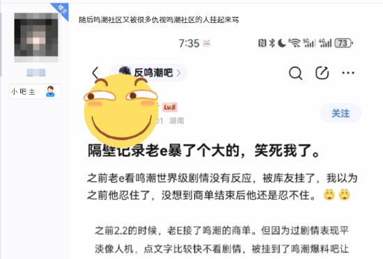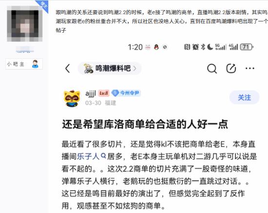 游戏博主“老E”拉踩Asoul乃琳播鸣潮,asoul吧即刻宣战,派出吧友在其评论区开团。老E踢到铁板,火速认怂,开启7天评论防护。