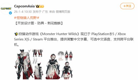 微博消息。近日,卡普空官方微博发布了《怪物猎人:荒野》刺花蜘蛛防具的防具设计图。从外装到“内饰”,十分华丽,一起来看看吧。