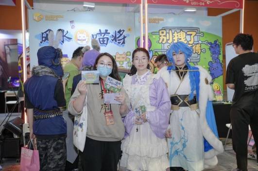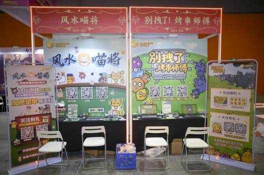 两款游戏各凭特色吸引了不少玩家前来体验试玩。《别拽了!烤串师傅》用温馨可爱的画风和自由布阵、连锁清屏的爽快体验,招募到了不少的“烧烤主理人”;而《风水喵将》则凭借“越打越上头”的肉鸽卡牌玩法,吸引了不少玩家前来挑战。