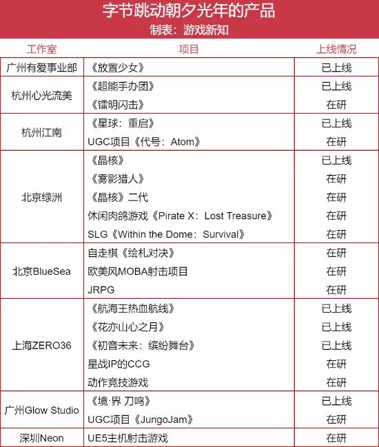 此外仍留在字节的工作室有: