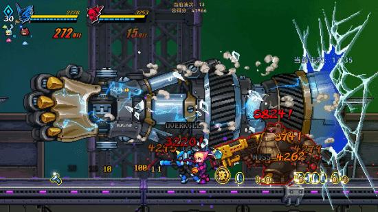 《超合金冲击》延续了《超合金游侠》的经典2D像素画风,并以更加精美的像素美术构建了细腻充满科幻感的太空世界。玩家将化身风格迥异的两名宇宙猎人凯里或者牧,迎接全新的冒险与挑战!