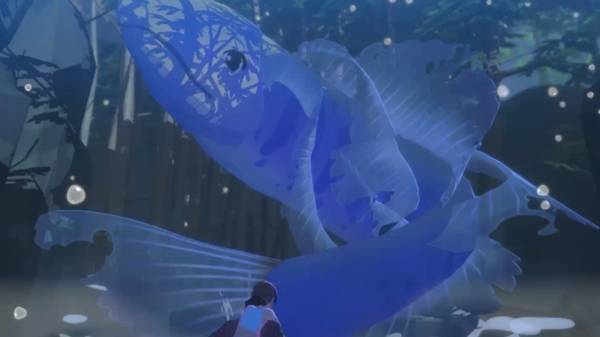 鱼形神灵:幻彩巨大的身影游动于林间,指引主角穿过迷雾。