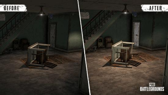 本次更新中,艾伦格地图回归到了玩家熟悉的经典面貌,赛季限定内容“艾伦格:零度计划”的相关道具与功能被移除。同时密室中可获得的道具也出现了变化,玩家可在密室中获得多合一维修套件、紧急掩体信号弹和电波干扰背包等道具。地图新增可破坏气罐,轰炸区与渡轮也再次登场。此外,本次更新还对整体建筑的室内照明进行了优化。
