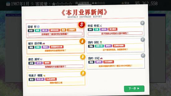在《夕阳游戏店》中,你的日常是关于热爱与判断的艺术。你需要时刻关注最新的游戏动态,根据媒体评价与玩家期待值来预测谁会成为下一个月的销量冠军。