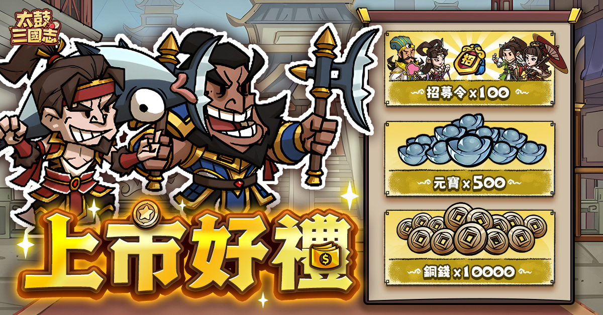 【以下內容皆來自廠商提供新聞稿資料】本作是一款魔性擊鼓、策略至上的放置 RPG,玩家只要擊響太鼓,便可無痛號召天下名將,伴隨勁歌熱舞前來助陣!而且經典武將通通不用花錢!福利滿滿直呼過癮!同時宣布事前預約活動已圓滿達成,事前登錄獎勵皆已贈送發放!現在登入遊戲就送招募令 100 抽,還有更多超值豪禮準備送給你!登入遊戲就送招募令 100 抽、元寶、銅錢等超值豪禮!《太鼓三國志》事前登錄活動已圓滿落幕,感謝各位主公的共襄盛舉!官方精心準備的登錄豪禮絕不會忘記,現在只要登入遊戲即可免費領取「招募令×100」、「元寶×500」、「銅錢×10,000」」等豪華大禮!此外,相關社群還有不定時加碼禮包!好禮一波又一波!馬上加入《太鼓三國志》一起搖擺吧!