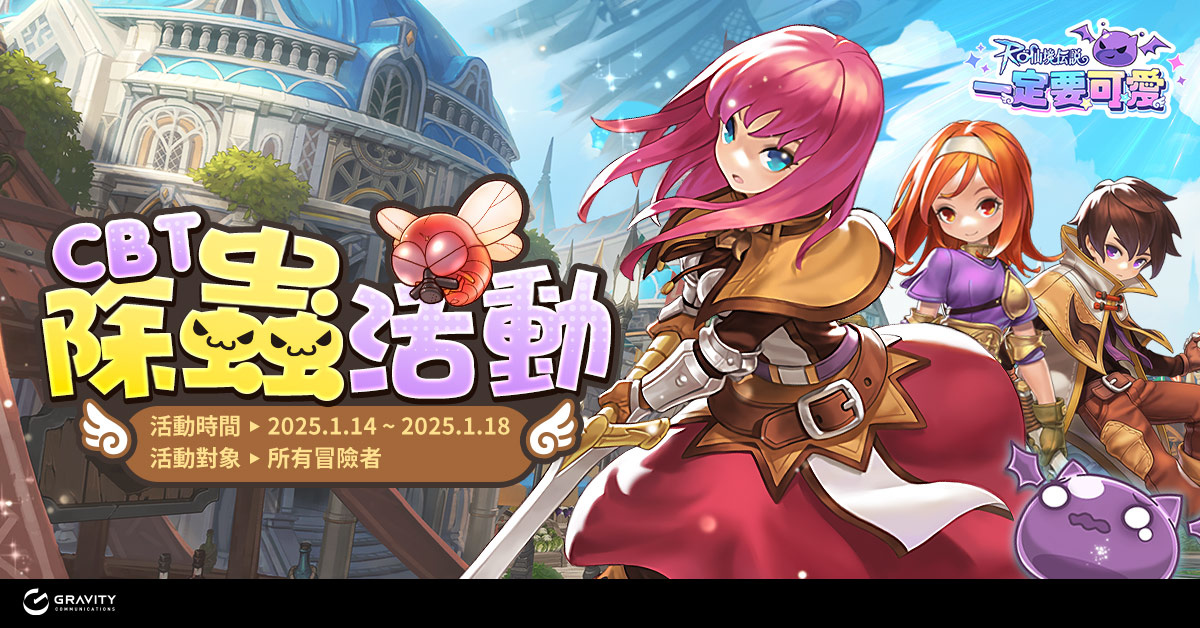 .封測抓蟲活動:參與「找BUG」活動,成為改進遊戲的重要力量!活動期間在遊戲中若遇到 BUG,於《RO 仙境傳說:一定要可愛》登入官網會員後於上方→客服中心→問題回報進行 BUG 回報,經官方查驗屬實就能獲得豐富獎勵,與所有玩家分享你的貢獻。