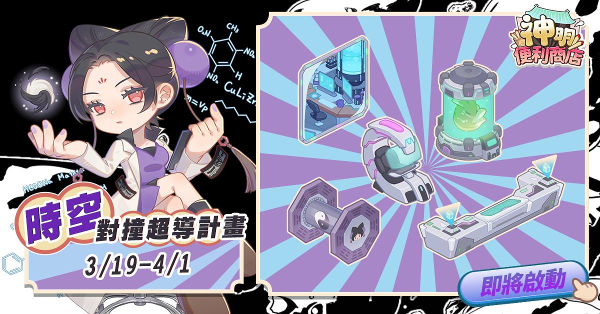 「時空對撞超導計畫」待你解鎖「西王母」及「研究室系列」家具!《神明便利商店》全新活動「時空對撞超導計畫」即將於 3 月 19 日 正式展開,西王母降臨,解鎖未來科技神秘力量!活動開啟後,玩家將可透過合成盤面消耗「能量」來獲取活動積分,累積積分即可兌換對應獎勵,玩家也可透過購買 PASS 禮包解鎖豪華獎勵,在此活動中還能獲得專屬限定神明角色「西王母」,以及活動限定「研究室系列」家具,如:人體工學科技椅、神祕生物培養艙、強子對撞機模型......等等。一舉突破時空限制,打造專屬你的未來科技風商店!
