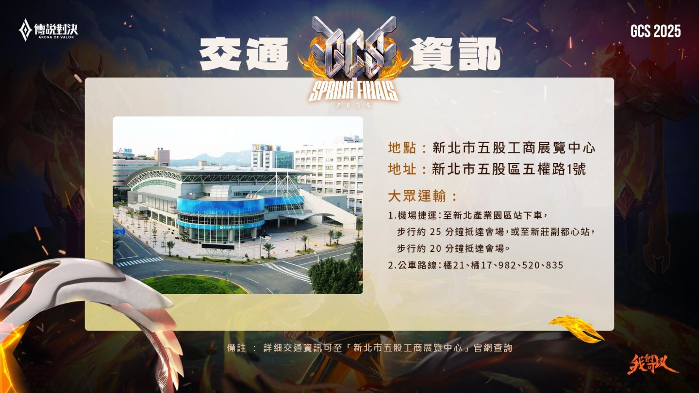 2025《Garena 傳說對決》GCS 春季職業聯賽冠軍賽將於 5/3(六)12:00 於新北市五股工商展覽中心舉行,由三支 GCS 最頂尖的戰隊 Flash Wolves(FW)、Cathay ONE Team(ONE)與 Ban Mei Gaming(BMG)於當天展開最終對決。