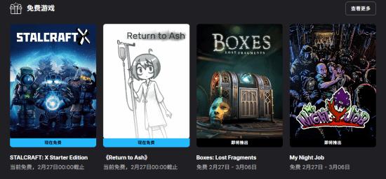 下款游戏《Boxes: Lost Fragments》与《My Night Job》将于2月27日开放领取,截止至3月6日。