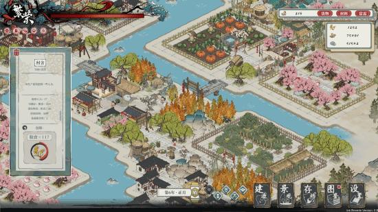 玩家将以提升城镇的繁荣度为主要游戏目标,试玩版的完整体验流程将长达5-10小时。即使已经达成游戏目标,玩家也可以继续停留在游戏世界中,在没有任何数值压力的情况下,继续随心所欲地规划布局、装饰细节,打造属于自己的桃源胜境。