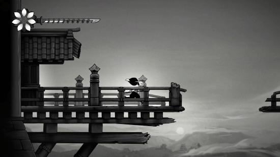 经典武士电影(剑戟片)以手绘动画的方式呈现,每场战斗都有与神灵相称的场景设计,能让你体会到精巧的黑白艺术。在表达神灵之力时,针对其招式动作进行上色,确保画面兼顾美感与功能。