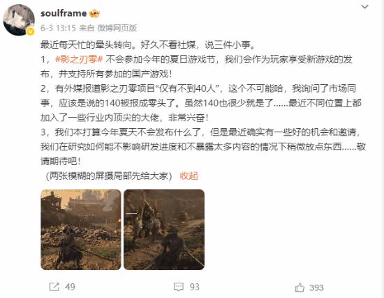 其中特别提到:“我们本打算今年夏天不会发布什么了,但是最近确实有一些好的机会和邀请,我们在研究如何能不影响研发进度和不暴露太多内容的情况下稍微放点东西……敬请期待吧!”