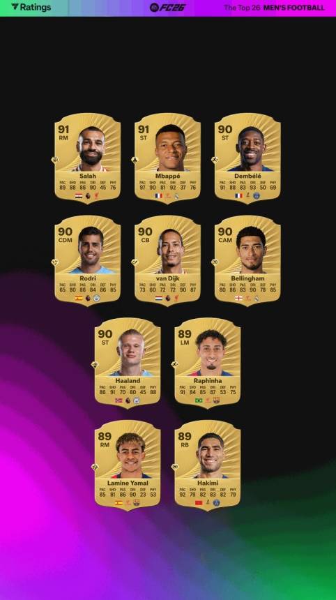 今天,EA SPORTS FC™ 26 正式公布了男女足 Top 26 球员评分榜单,展现来自世界顶级联赛的最高评分球员。今年,穆罕默德·萨拉赫首次登顶男足评分榜榜首,凭借 91 分的总评,与世界知名前锋基利安·姆巴佩并列。而另一大亮点是,拉明·亚马尔成功跻身男足前十榜单,并以 +8 的大幅提升成为今年评分提升最大的球员。同时,在 FC 历史上首次,阿莱克西娅·普特利亚斯与艾塔纳·邦马蒂以 91 分并列女足榜首!