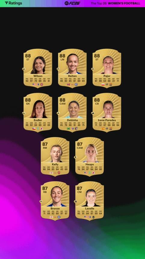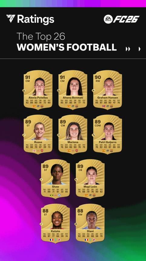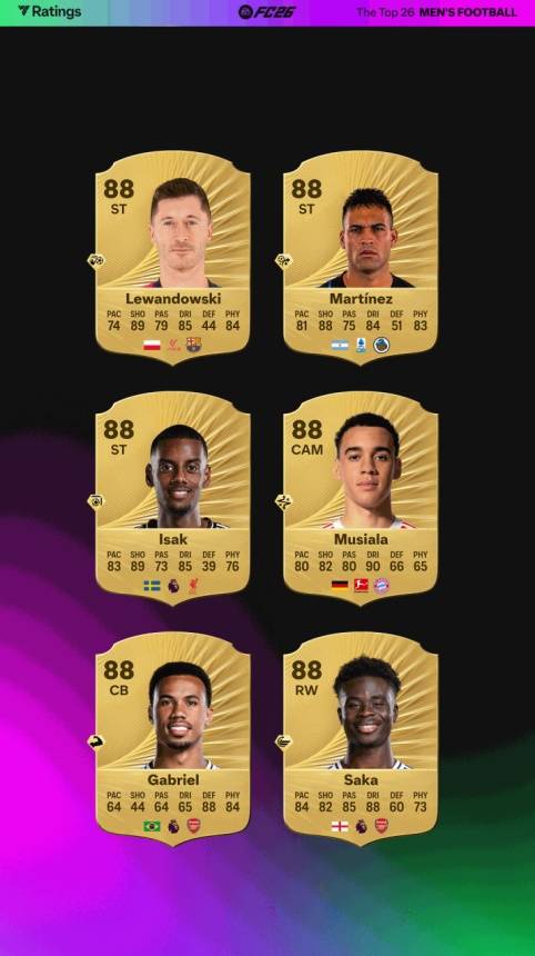 除亚马尔外,还有多名球员自 FC 25 以来获得大幅提升,并首次进入前十,成为今年赛场上不可忽视的力量。其中,男足球员包括拉菲尼亚(+5)、阿什拉夫·哈基米(+5),女足球员包括马里奥娜(+5)、阿莱西亚·拉索(+4)以及卡迪亚·肖(+3)。