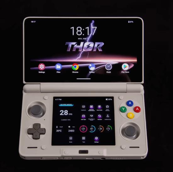 AYN 在其官方 YouTube 频道上发布动态,分享了一组图片,展示了 Thor 双屏安卓游戏掌机,采用可折叠设计,主打便携与高性能体验。
