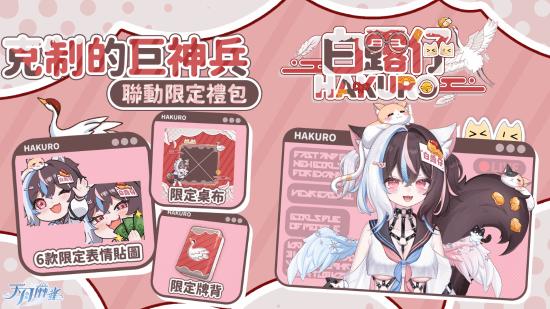 而此次为新雀士作粤语配音的 Vtuber 白露仔更与《天月麻雀》联动,推出「克制的巨神兵白露仔」联动限定礼包。除了包括白露仔主题装饰物,更有 6 款粤语配音表情于礼包同步上线。表情集合包括「来都来了」、「你七街瞓」等多个大热迷因。