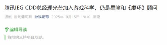 据悉,这一变动是基于双方意愿,在腾讯的支持下,光芒加入到游戏科学的团队。同时,腾讯内部也做了充分的交接安排,光芒将继续作为星瞳与《虚环》的顾问,支持项目继续发展。