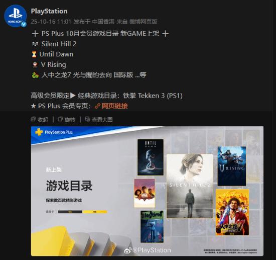 PlayStation官方刚刚公布了10月份港服二三档会员游戏,包含《寂静岭2:重制版》、《铁拳3》等游戏。PS Plus会员专页>>>