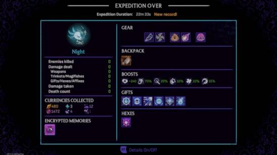 结算回顾界面(跑图总结): 玩家现在每次挑战结束后,都能看到详细的统计数据面板,清晰复盘该局的伤害、击杀、构筑详情等关键信息。