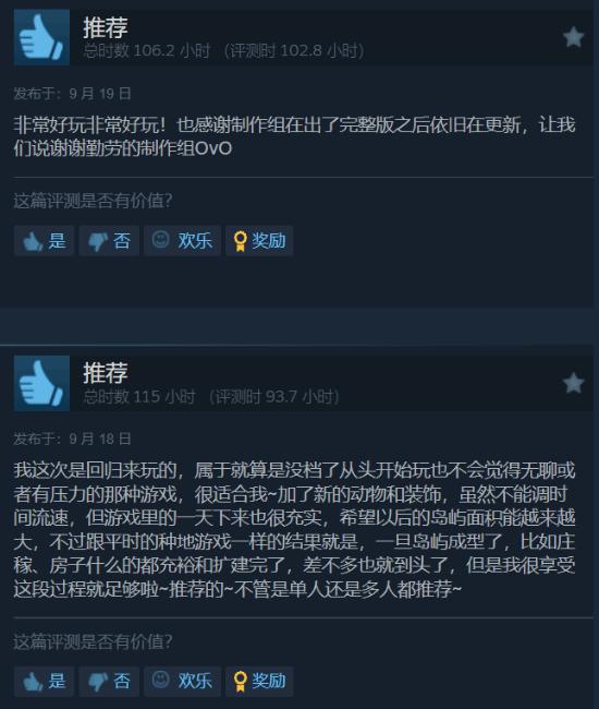 很多玩了上百个小时《金垦小镇》的玩家都表示——这款游戏的可玩性非常高,就算从头开始玩也不会有任何压力,非常推荐上手。
