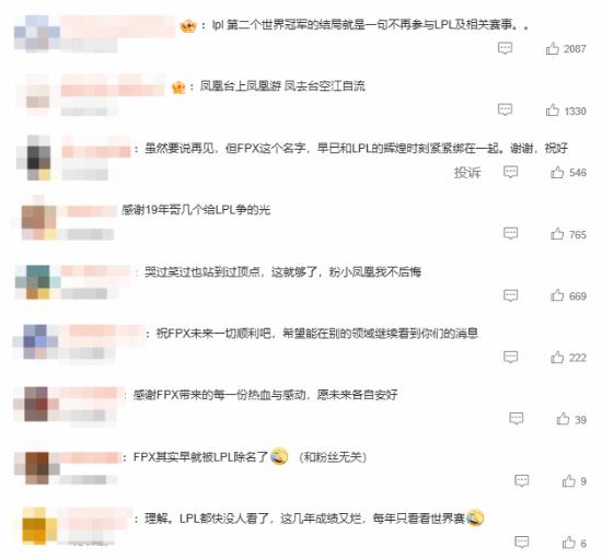 随后,#FPX退出LPL#登顶微博热搜,引发热议,大量粉丝感谢FPX对LPL的贡献,并对FPX退出表达唏嘘。