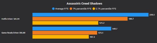这两天有人测试过了新旧驱动的性能表现,在刺客信条游戏中区别很明显,平均帧从之前150fps提升到了220fps,差不多50%提升。