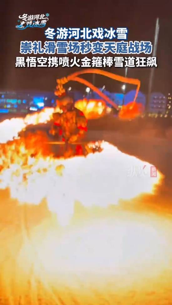 12月5日,河北张家口。崇礼富龙滑雪场惊现“黑神话悟空”本尊!脚踩雪板腾云驾雾,手中金箍棒竟然真的喷火开路,这滑雪场面也太燃了吧!