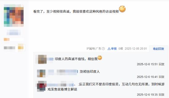 玩家直呼游戏区将迎来“大变”,也有玩家表示制作人很以后诚意,喜欢这类访谈视频,也有玩家并不看好印度游戏。