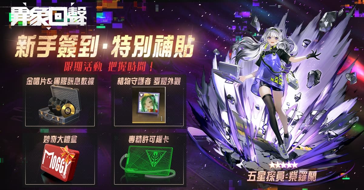 新手玩家每日簽到可再領取五星探員「紫羅蘭」、探員外觀「植物守護者 麥婭」與特製飾品「靈動狐耳·灰」。開啟「回聲指引」功能後,14 天內完成任務即可獲得黑膠訊息數據、金唱片等大量培育道具,快速強化隊伍。