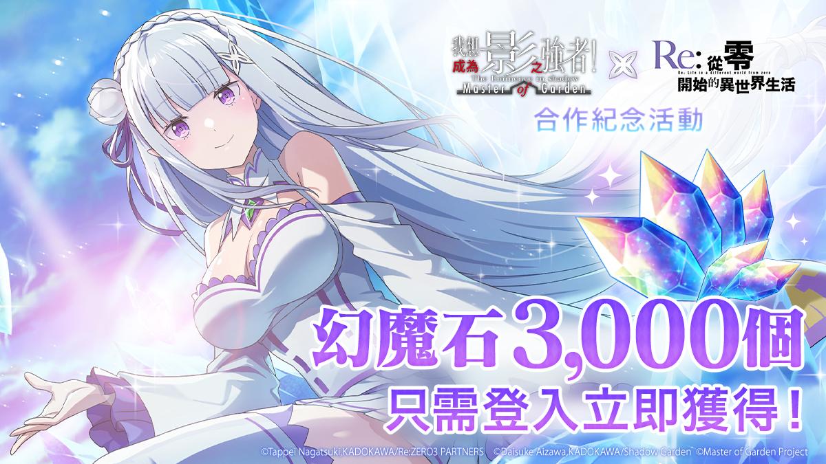 大宇資訊旗下星宇互娛所代理之《我想成為影之強者!Master of Garden》,正式宣布於 2 月 20 日推出與《Re:從零開始的異世界生活》的合作活動,玩家們家可以更新後進入遊戲體驗。