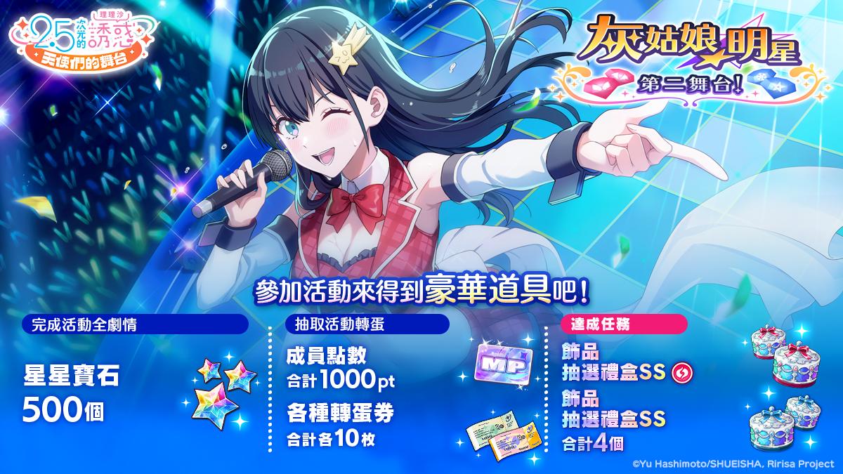 集英社同名原作漫畫的動畫改編、日商艾鳴開發、大宇資訊負責台港澳發行的《2.5次元的誘惑(理理沙) 天使們的舞台》,舉辦期間限定活動「灰姑娘☆明星 第二舞台!」。
