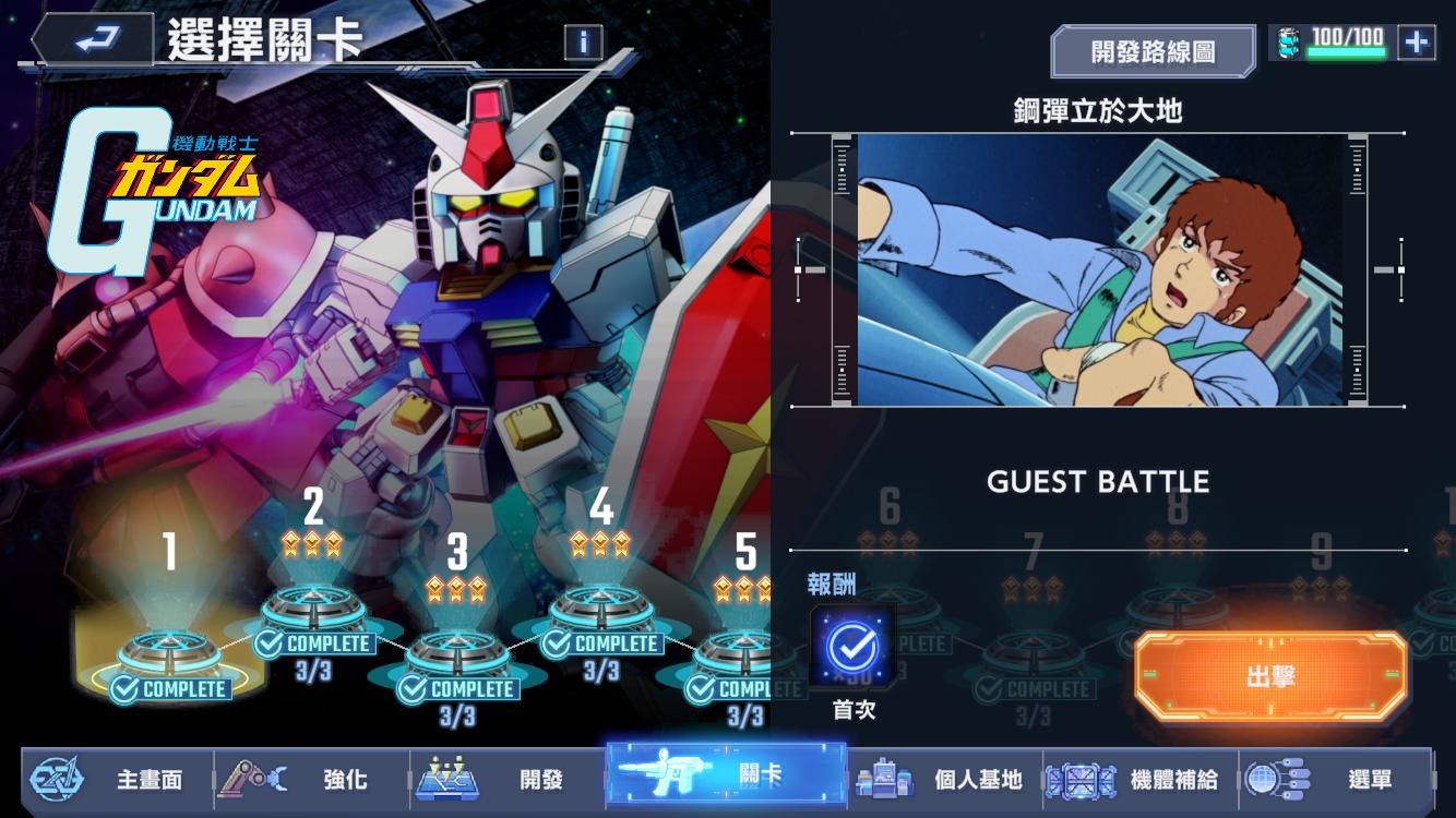 遊戲關卡中可欣賞到眾多《鋼彈》作品的精采故事。除了遊玩已知的作品,也可攻略陌生作品的關卡,配合充滿震撼力的戰鬥演出,一睹其經典名言與精彩名場面!
