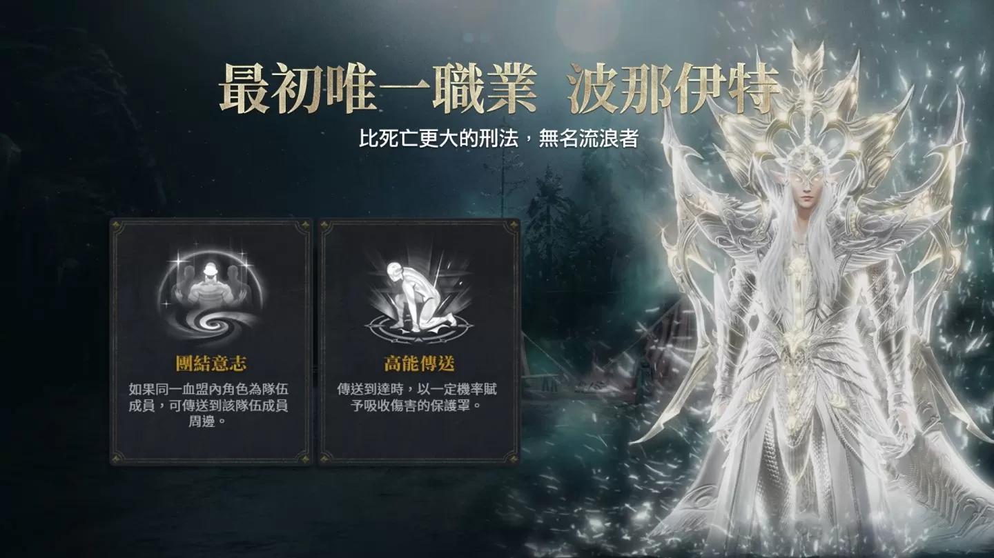 新增最初唯一職業「波那伊特」,主武器為所有系列武器,主要技能有「團結意志」與「高能傳送」。「團結意志」技能特色是,如果同一血盟內角色為隊伍成員,可傳送到該隊伍成員周邊;「高能傳送」技能特色是,傳送到達時,以一定機率賦予吸收傷害的保護罩。