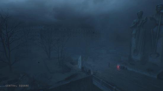 广场三面环绕着带有底层商铺与服务设施的住宅建筑。南侧原计划建一座剧院,其后方的草地上还规划了一个蓄水湖。广场中央原本要建造一座方尖碑,虽然这个计划在 20 世纪五十年代中期被搁置,但在《时间旅者:重生曙光》的虚拟世界中,它终于得以“实现”。只要沿着特工 ND-3576 的足迹前进,你一定能找到它。