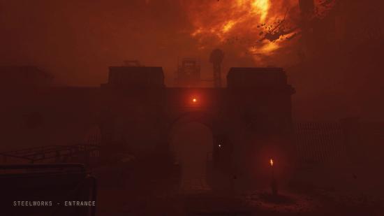 游戏开发者当然也没有忘记那座极具象征意义的炼钢厂大门——虽然在游戏里它看起来像是通往地狱深渊的入口,但细心的玩家一定能发现它与现实中克拉科夫那座真实大门之间的惊人相似之处。