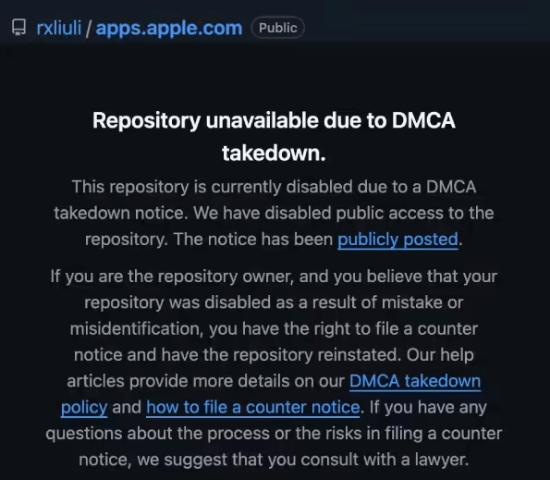 而根据科技媒体 PiunkiaWeb 今天报道,苹果已在最近向微软 GitHub 平台发送通知函,要求依照 DMCA(注:数字千年版权法)删除掉涉及泄露源码的仓库。