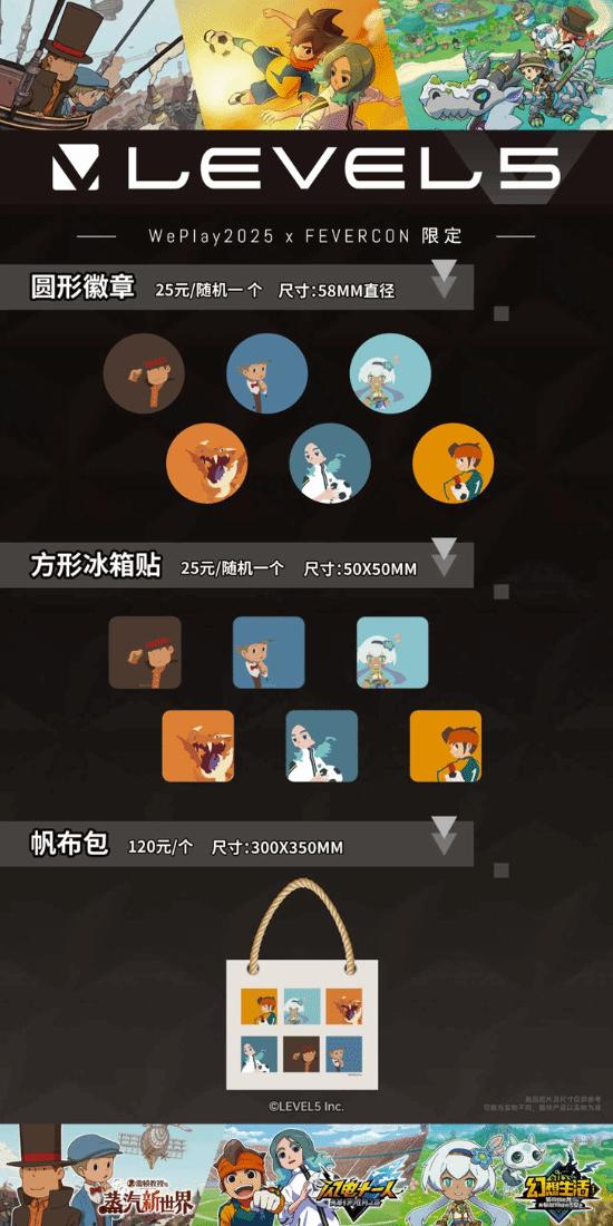 同时,在2025 WePlay的FEVERCON展区,LEVEL5带来了活动限定的原创周边进行贩售!所有周边均为2025 WePlay展会限定,欢迎玩家前来选购!