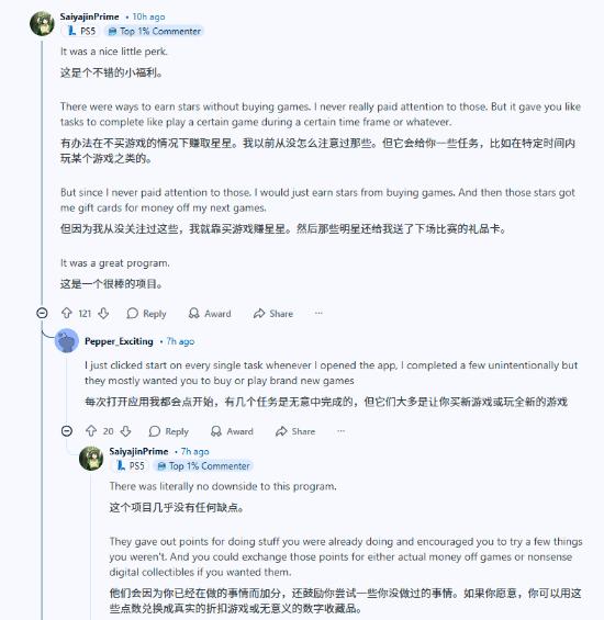 用户 “SaiyajinPrime” 表示,该计划是 “不错的小福利”:“不用买游戏也能赚代币,比如在特定时段玩指定游戏之类的任务,但我没太关注这些 —— 我主要靠买游戏赚代币,然后用这些代币换礼品卡,抵扣下一款游戏的花费,这计划真的很棒。”